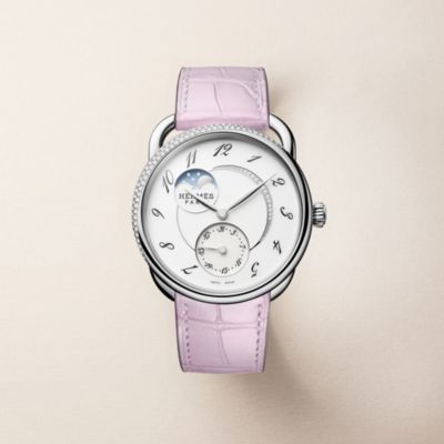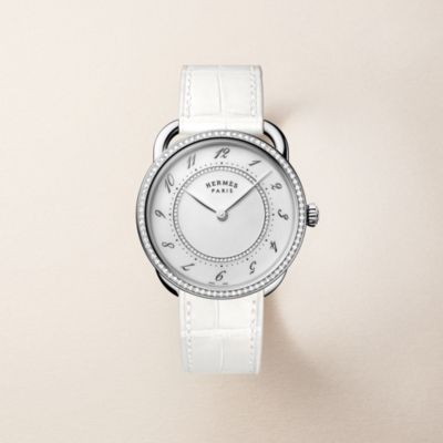Discover Hermès Time, a singular vision of time combining whimsy and rigor. Explore our collections of [women's watches], where elegance is adorned with precious materials and deep [black] dials. Watchmaking ingenuity is also expressed in our [men's watches], animated by the precision of [quartz] or poetic complications like the [moon phase]. From the sporty lines of the [Hermès Cut] to padlocked icons like the [Kelly], each timepiece reflects our savoir-faire. Finally, personalize your style thanks to our interchangeable [straps].