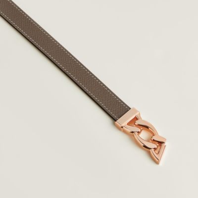 Maillon H Tresse belt buckle & Reversible leather strap 13 mm, Color: Black