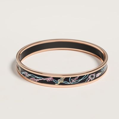 The Hermès wooden bracelets are precious treasures of bold craftsmanship. The object of your affection is sure to be found in the Nœud Marin collection, which features lacquered wood inspired by signature Hermès motifs. Or perhaps you might prefer the beautiful colors of our fine Fusion bracelets.