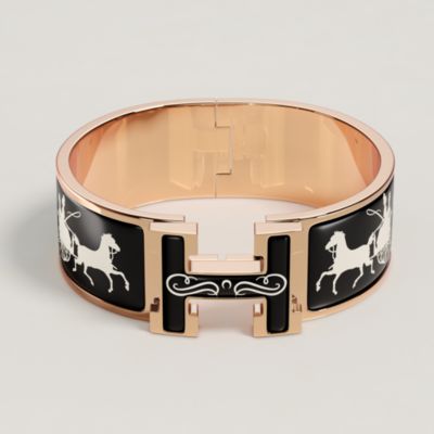 The Hermès wooden bracelets are precious treasures of bold craftsmanship. The object of your affection is sure to be found in the Nœud Marin collection, which features lacquered wood inspired by signature Hermès motifs. Or perhaps you might prefer the beautiful colors of our fine Fusion bracelets.