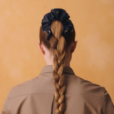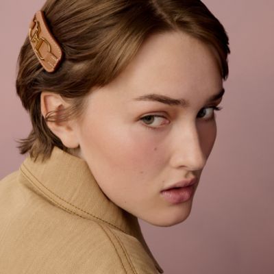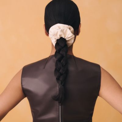 Elevate your hairstyle with our range of hair accessories, emblems of elegance and refinement. Explore an exclusive collection of headbands, barrettes, scrunchies, and headpieces. Indulge in the luxury of leather, the softness of silk, or the warmth of cashmere – exceptional materials rendered in the Maison's iconic colors: intense black, deep blue, or vibrant orange. From delicate silk hair accessories to distinctive leather hair clips and sumptuously soft cashmere scrunchies, find the perfect hair accessories to enhance your hairstyle.