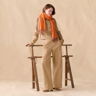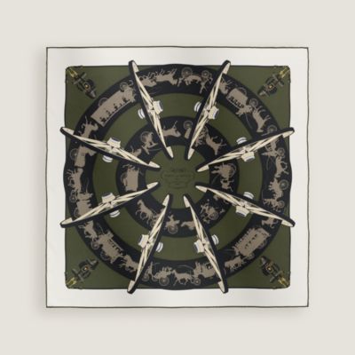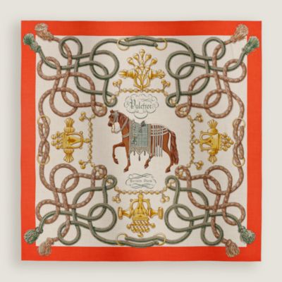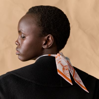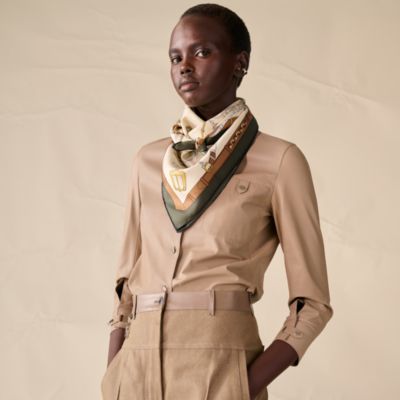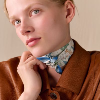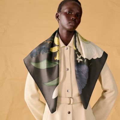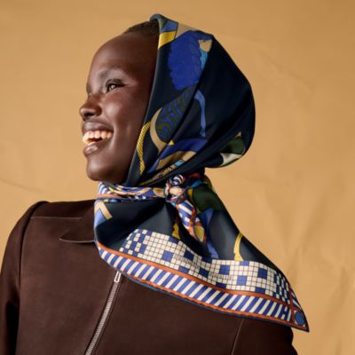 Delve into the colorful, ethereal and sensory world of Hermès scarves. Countless ways to style: The Maison's emblematic silk scarves are best accessorized using scarf rings, while larger Hermès shawls can be knotted to reflect your creativity. Whether draped around your neck or tied in your hair, glistening rectangle silk scarves and Hermès bandanas offer infinite possibilities to express your style with a touch of effortless elegance.